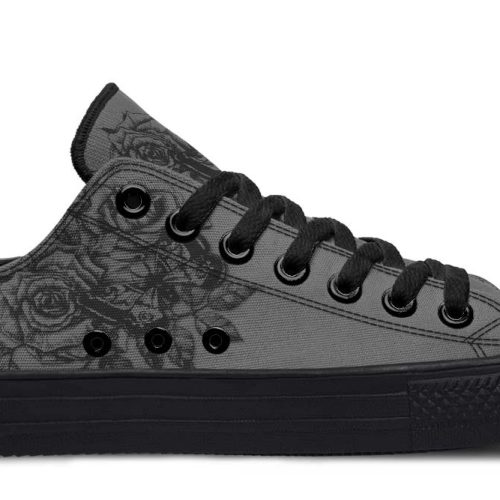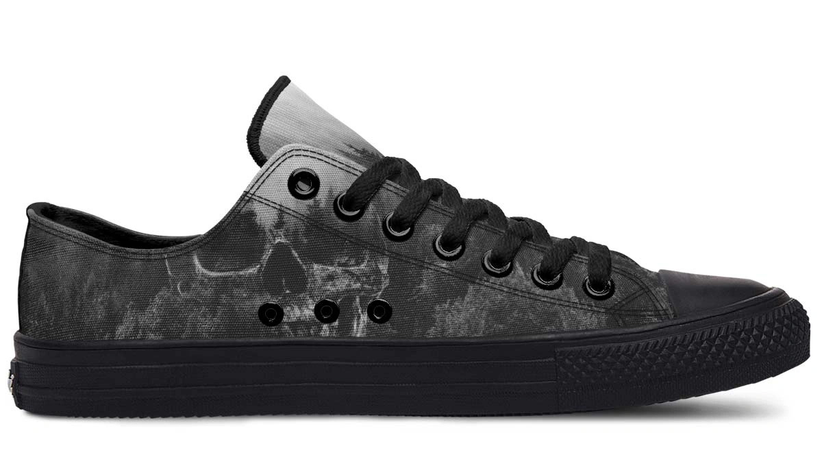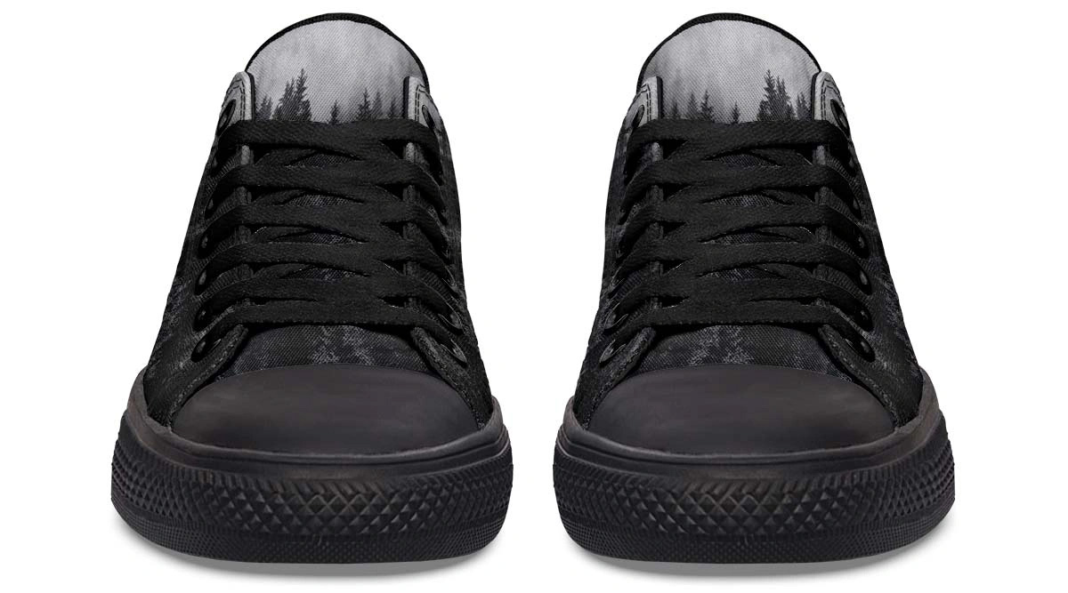Explore the dark side of style with Dead Forest sneakers. These black low tops feature a unique gothic forest pattern, perfect for an edgy, nature-inspired look.