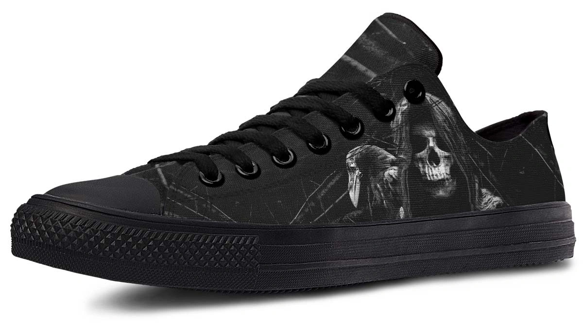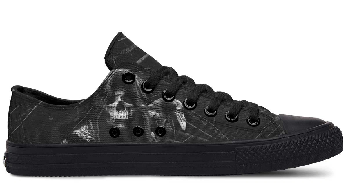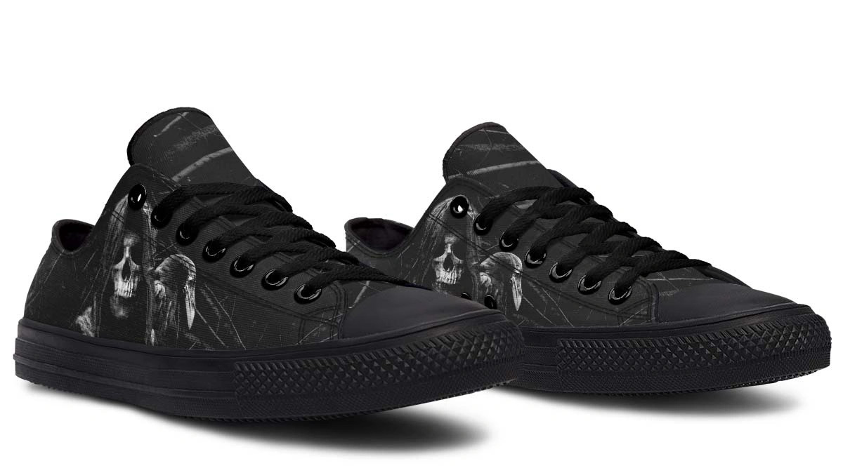 Death & Crow Black Low Top Sneakers – Gothic Urban Shoes
