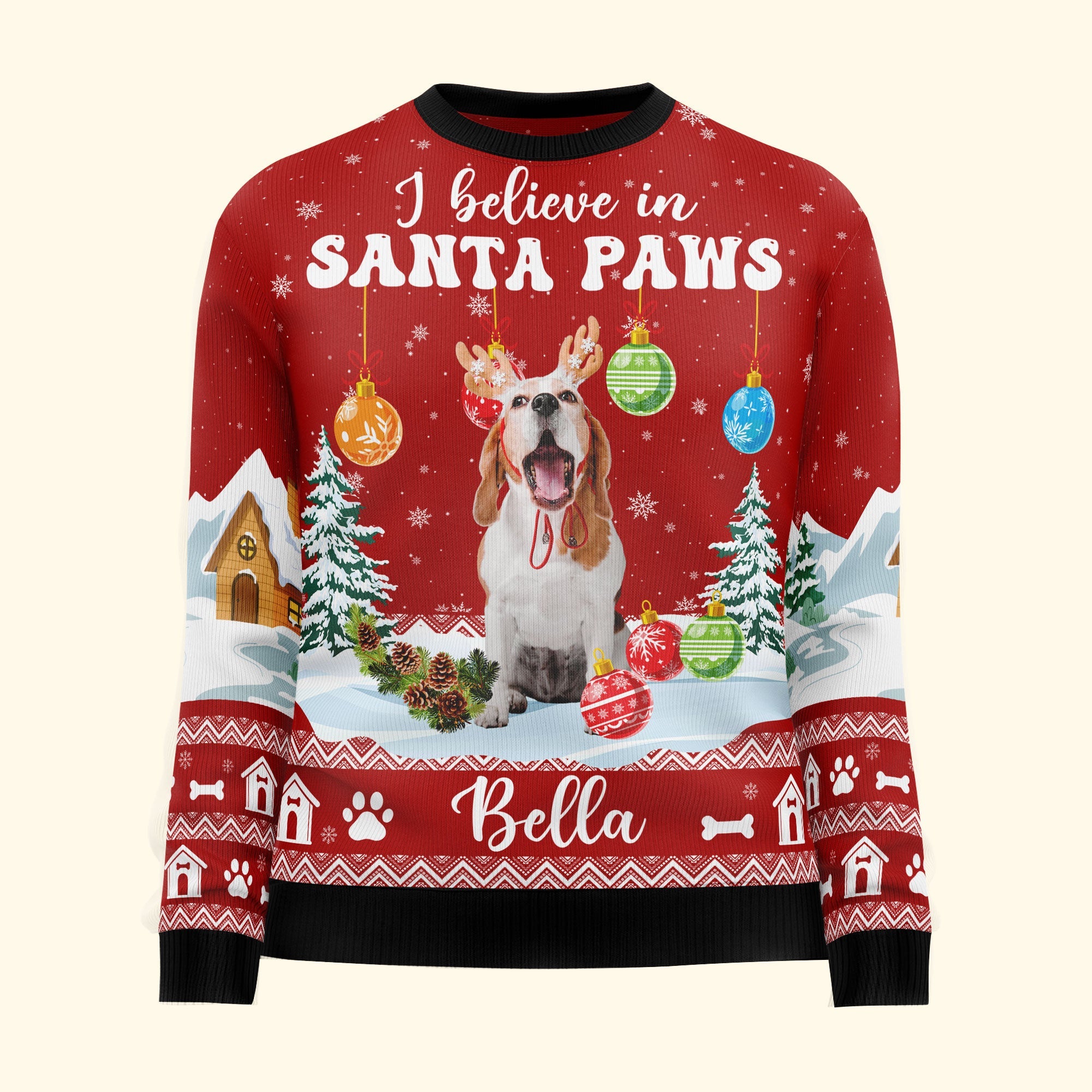 I Believe In Santa Paws – Personalized Photo Ugly Christmas Sweater